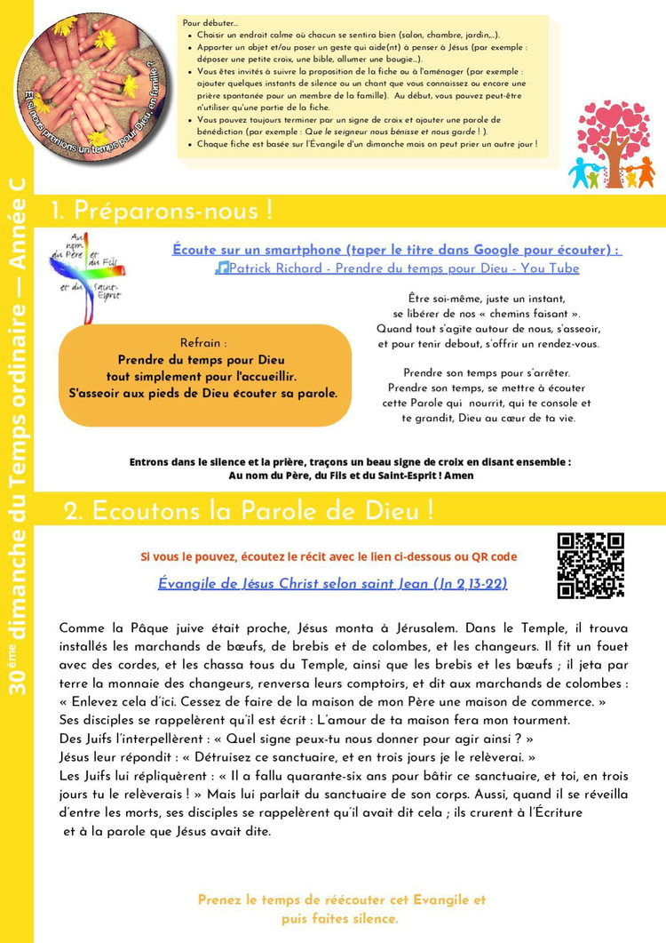 Mais lui parlait du sanctuaire de son corps. Aussi, quand il se réveilla d’entre les morts, ses disciples se rappelèrent qu’il avait dit cela ; ils crurent à l’Écriture et à la parole que Jésus avait dite »