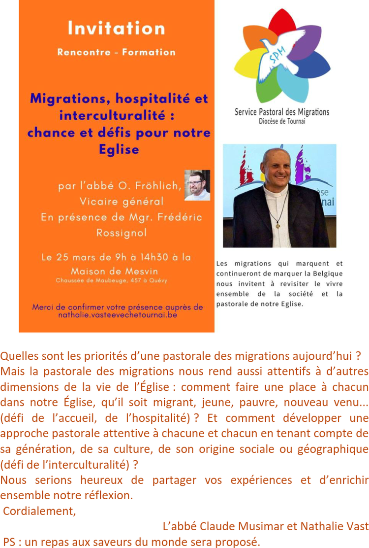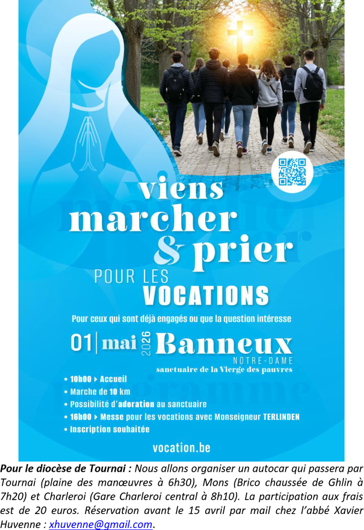 Nous remercions déjà les équipes et communautés chrétiennes de Mons et Frameries pour l’enthousiasme, l’accueil et l’engagement à la préparation de ces célébrations.