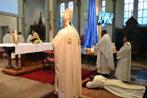 Une ordination est toujours un moment solennel mais aussi très joyeux. Des applaudissements aux chants, tout était empli de cette joie intérieure. Celle-ci se reflétait particulièrement dans les sourires lors du baiser fraternel donné par les prêtres à leur nouveau confrère à la fin de la liturgie de l’ordination. Elle était également présente lors des deux chants d’action de grâce mais aussi dans les échanges qui ont suivi la célébration, durant le verre de l’amitié.