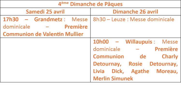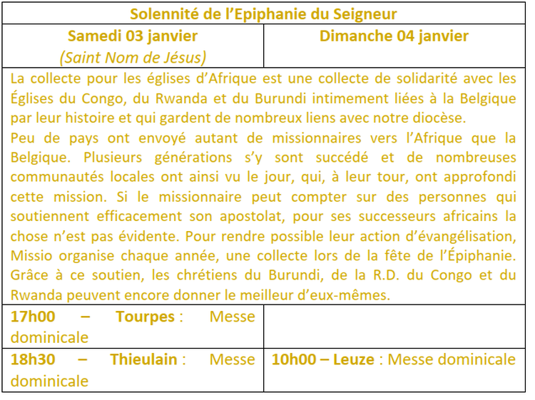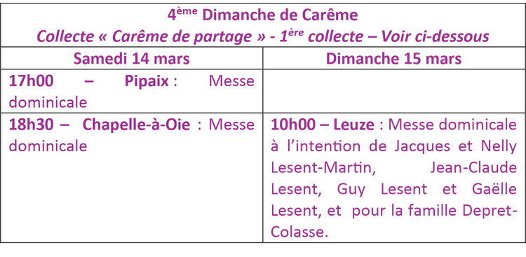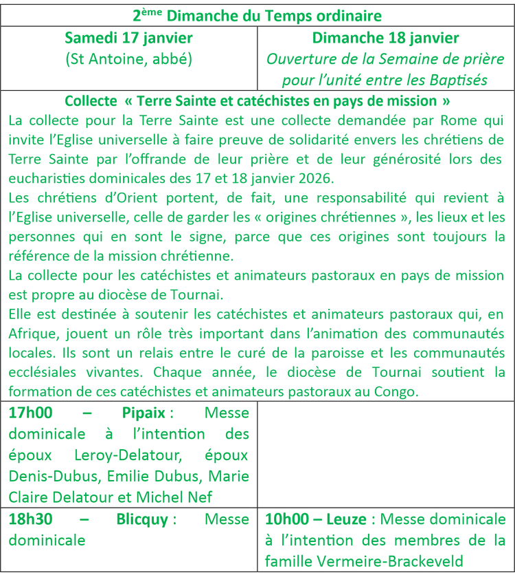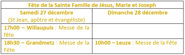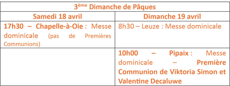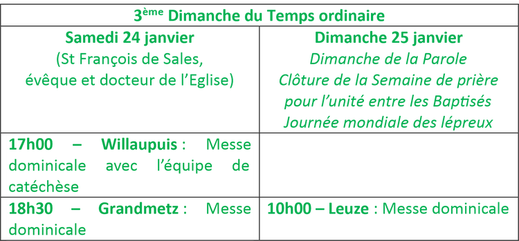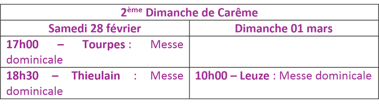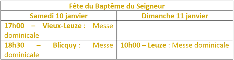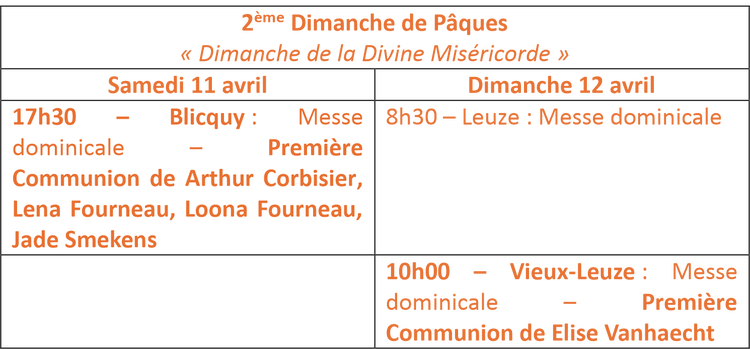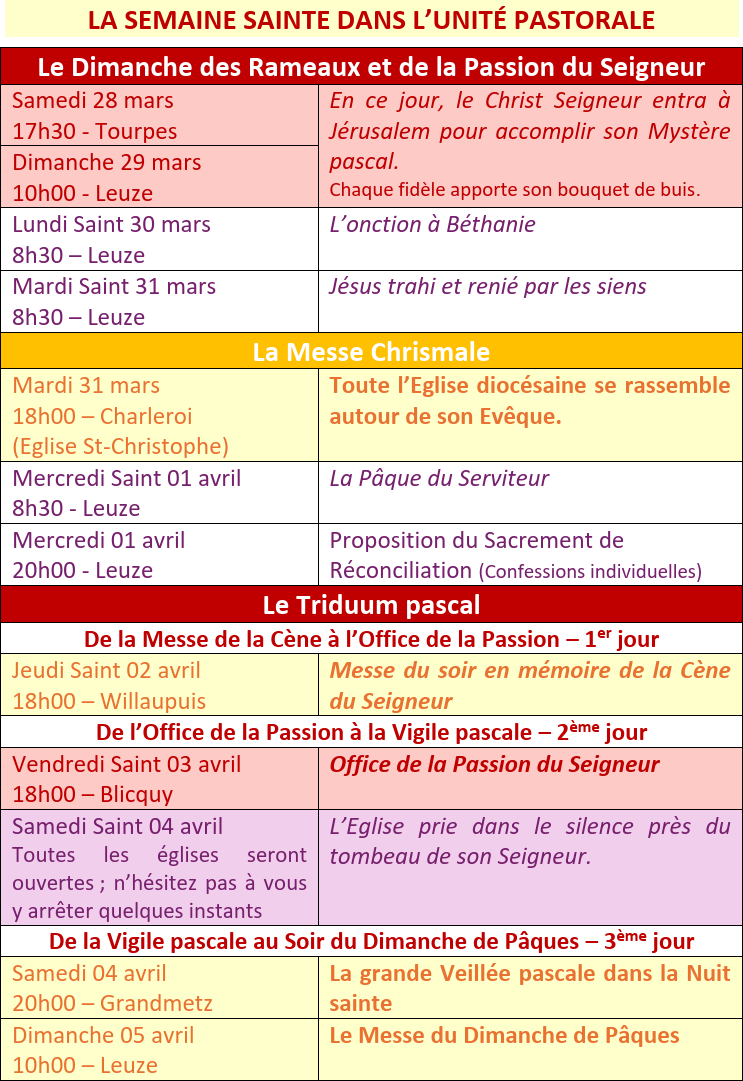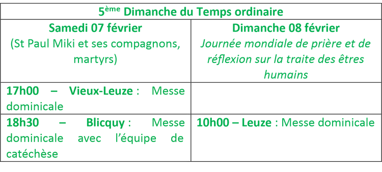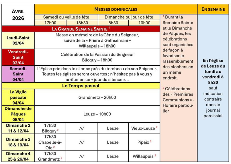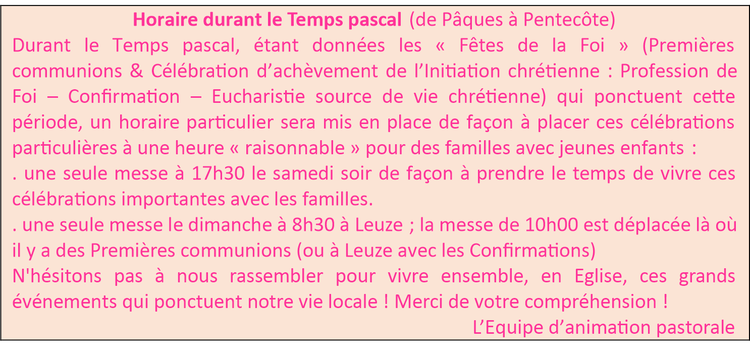 HORAIRES DES MESSES PERIODE EN COURS - Paroisse de Leuze-en-Hainaut
