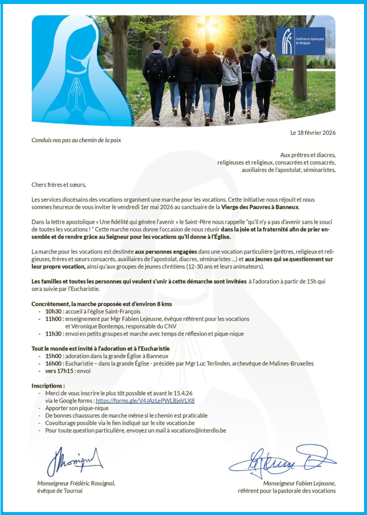 Nous remercions déjà les équipes et communautés chrétiennes de Mons et Frameries pour l’enthousiasme, l’accueil et l’engagement à la préparation de ces célébrations.