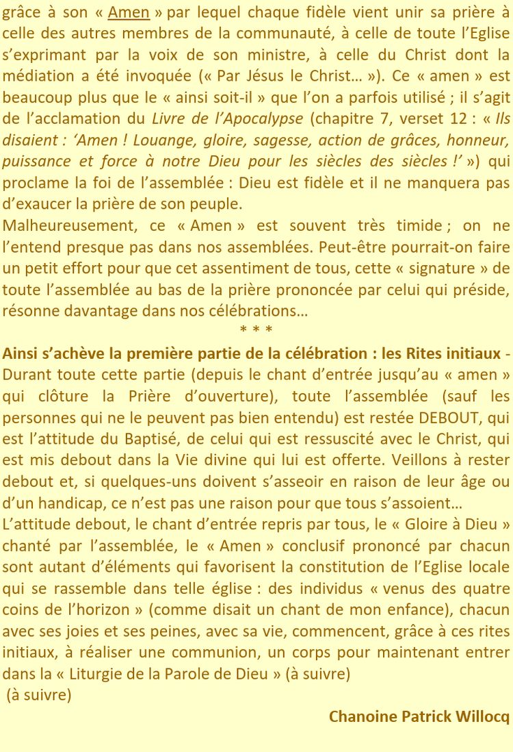 essentielle de sa Parole, et prions pour que nos paroles, et plus encore notre