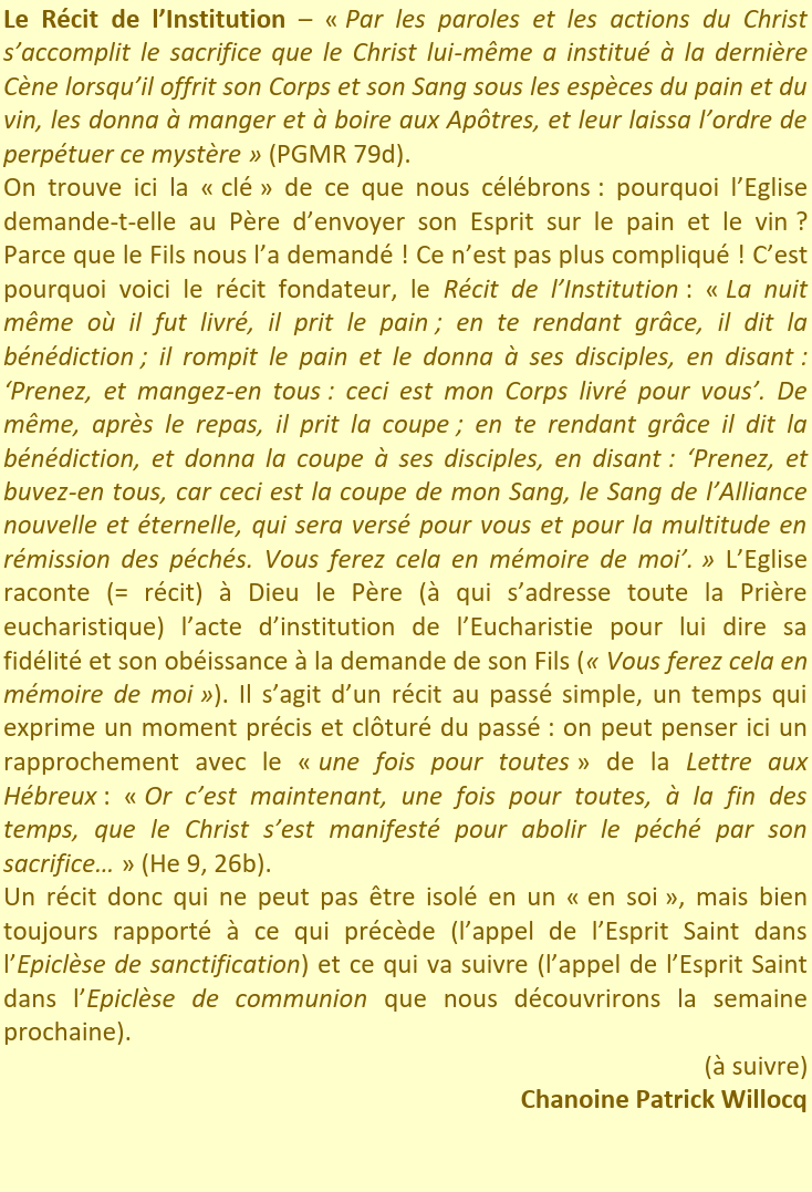 Un mot du Curé…