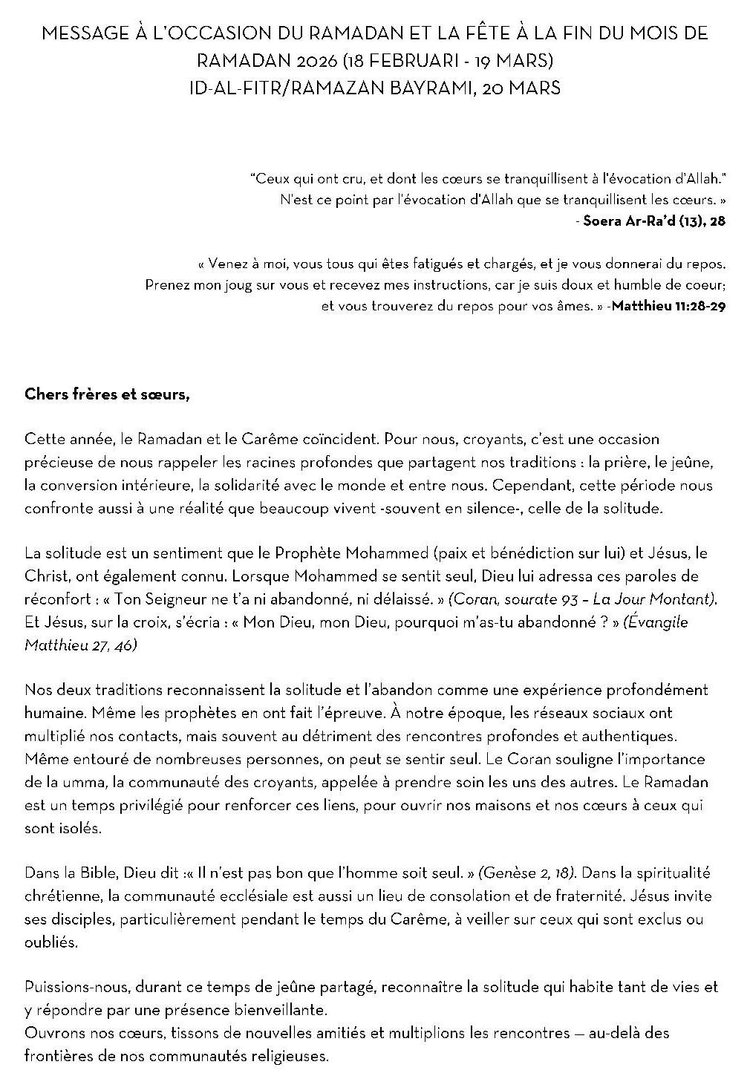 Bon et fécond Carême à toutes et à tous. Merci pour votre solidarité qui